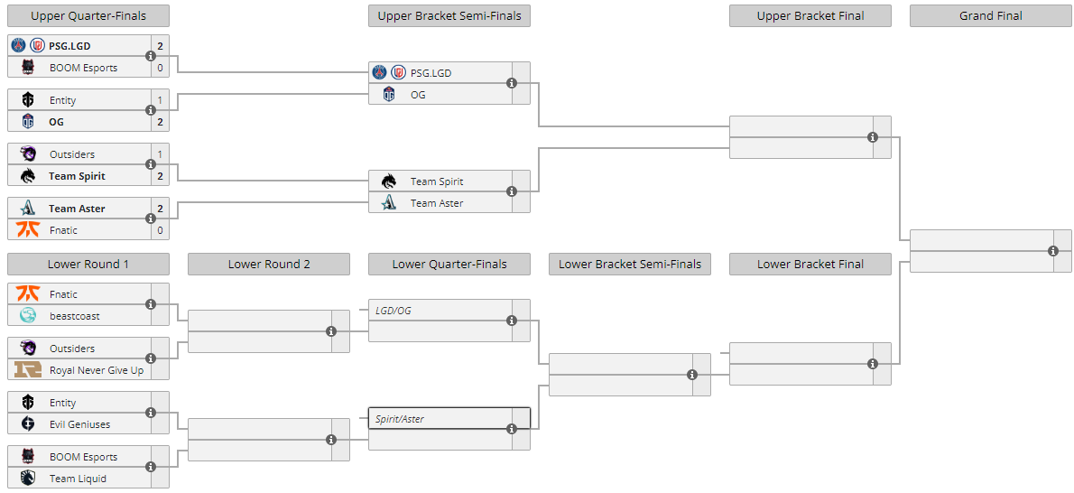 В следующем раунде верхней сетки Spirit и сыграет с Aster. Встреча пройдет 12 августа. Fnatic сразится с beascoast, Outsiders — против RNG. Оба матча пройдут 10 августа на вылет с турнира.