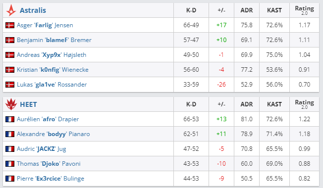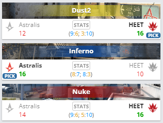 В матче группы C на LAN-турнире ESL Pro League Season 16 французская команда HEET сенсационно обыграла датский коллектив Astralis. Итоговый счет встречи — 2:1.