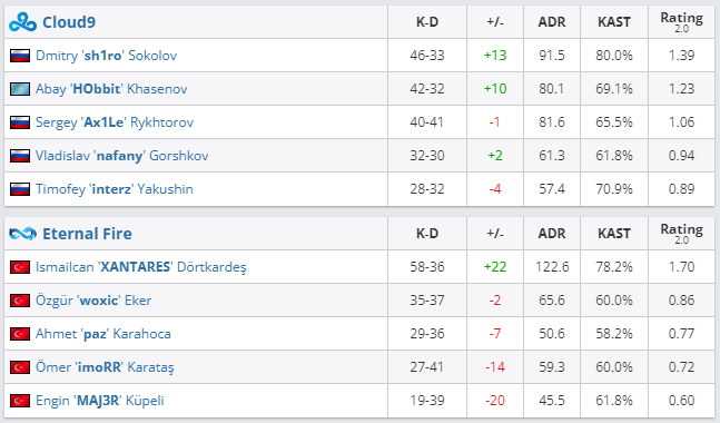 В матче группы D на ESL Pro League Season 16 состав Cloud9 со счетом 2:0 обыграл команду Eternal Fire. Это вторая победа “облачных” и второе поражение турецкой команды в рамках данного турнира.