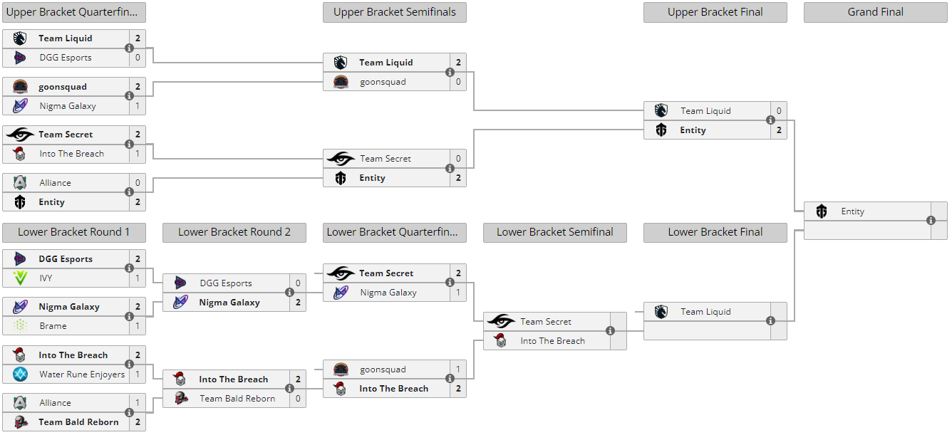 Entity разгромила Team Liquid в финале верхней сетки квалификации к The International 2022. Матч окончился со счетом 2:0. После этой победы коллектив Дмитрия Fishman Полищука прошел в гранд-финал квалификации.