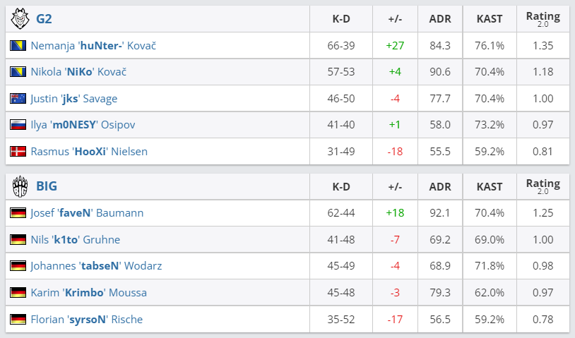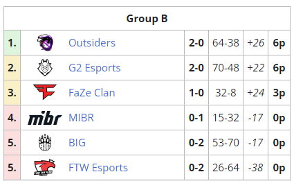 В матче группы B LAN-турнира ESL Pro League Season 16 интернациональны состав G2 Esports оказался сильнее немецкой команды BIG. Итоговый счет встречи — 2:0. Сегодня днем в это же группе Outsiders обыграли FTW Esports.