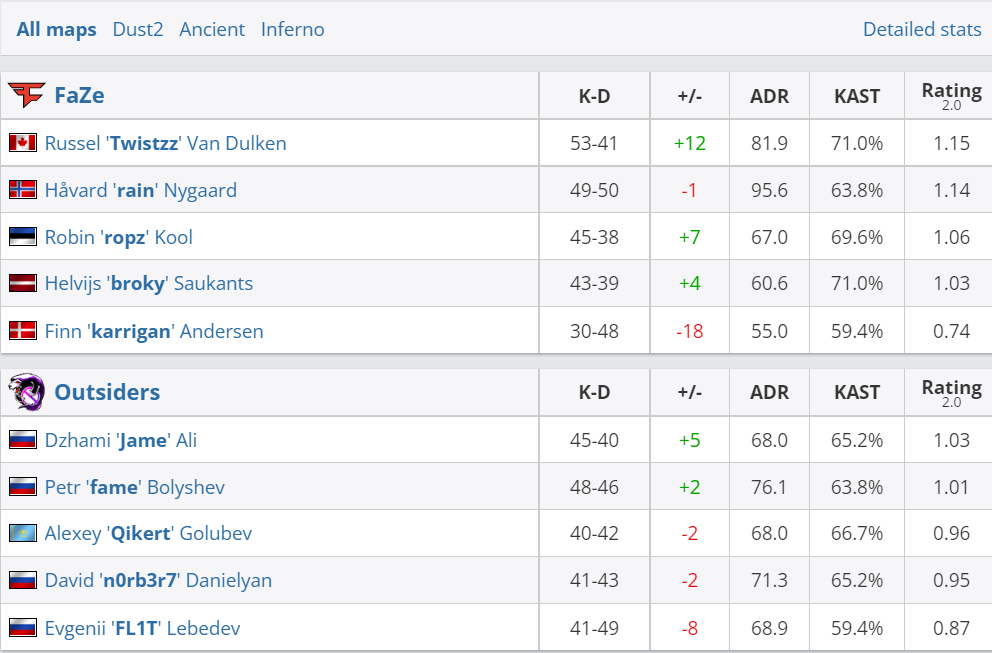 FaZe Clan смог одержать победу над коллективом Outsiders в рамках группы В на ESL Pro League Season 16. Матч окончился со счетом 2:1.