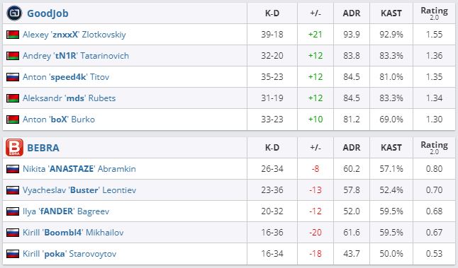 Коллектив GoodJob вышел в плей-офф PARI Patriki Vibe LAN 2022. В матче за проход в следующий раунд команда обыграла BEBRA с Кириллом Boombl4 Михайловым — 2:0 (Nuke — 16:3, Inferno — 16:7).