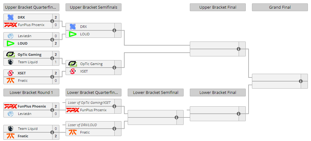 Завершились матчи первого раунда в нижней сетке плей-офф VALORANT Champions 2022. Турнир покинул чилийский коллектив Leviatan и интернациональная Team Liquid.
