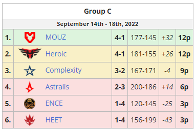 Состав MOUZ занял первое место в группе и продолжит выступление в четвертьфинале плей-офф, а Heroic и Complexity будут вынуждены бороться за выживание в 1/8 стадии.