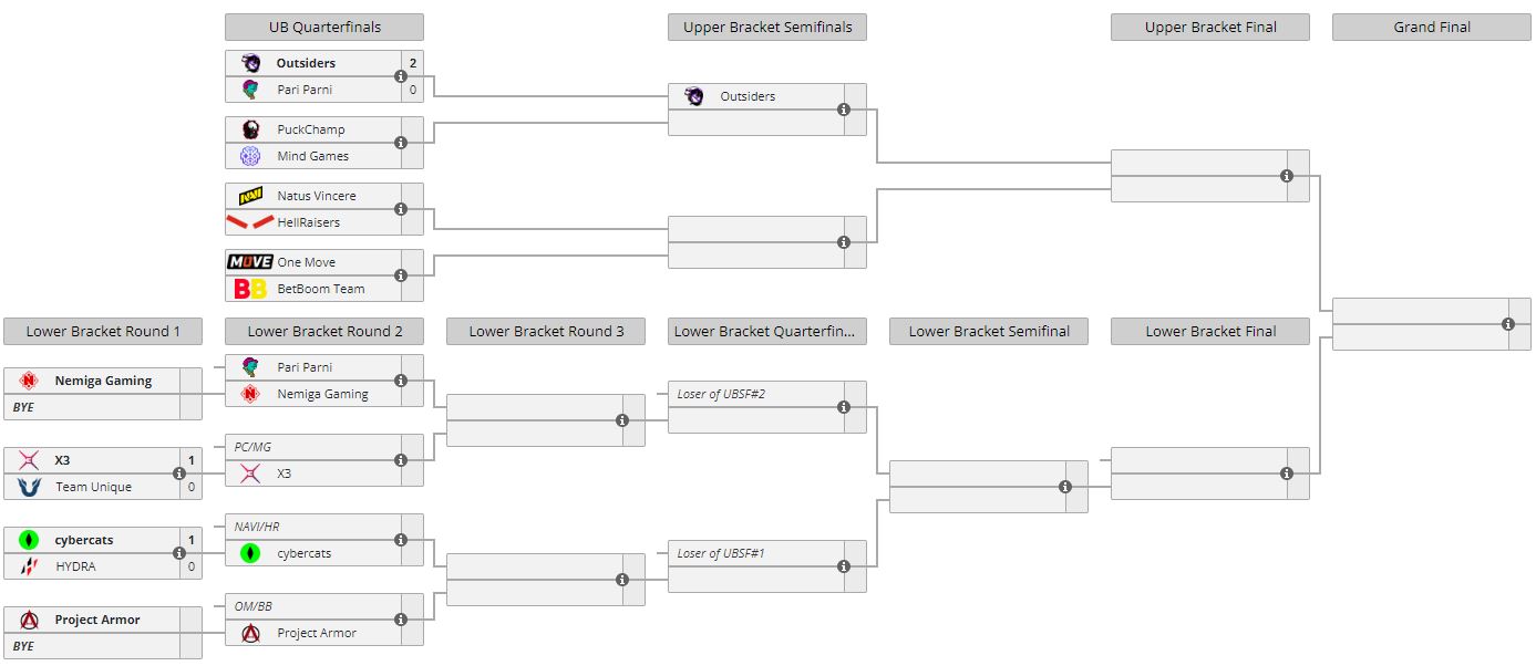 Outsiders прошли во второй раунд верхней сетки в матче закрытой квалификации к The International 2022 для Восточной Европы. “Аутсайдеры” без проблем переиграли Pari Parni — 2:0.