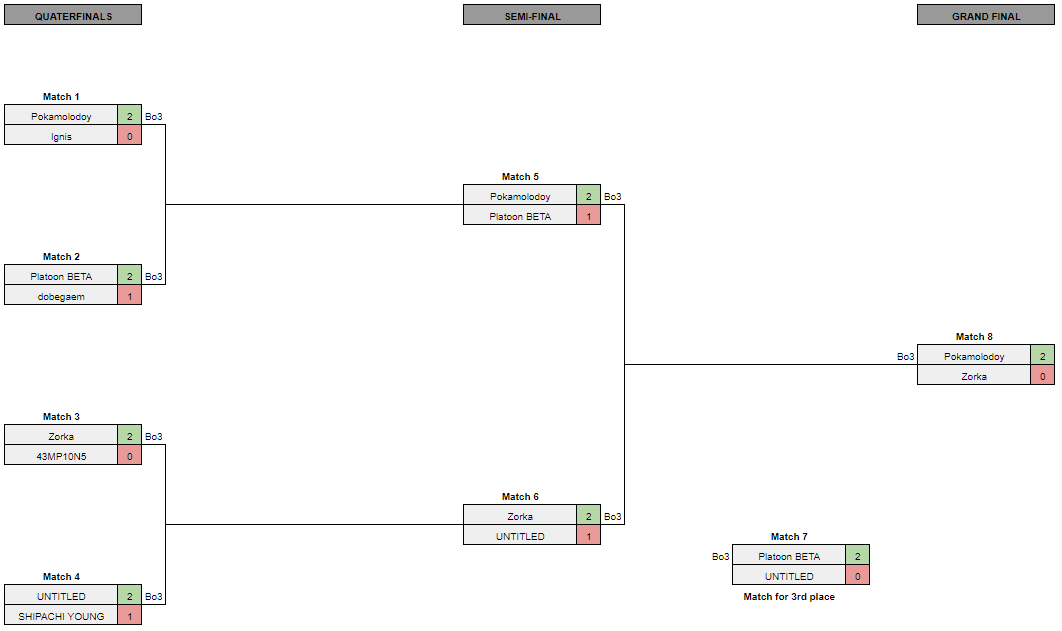 Вместе с титулом чемпиона Pokamolodoy заработала 1500 рублей. Выигрыш Zorka составил 1000 рублей. Занявшая третье место PLATOON Beta получила всего 500 рублей.