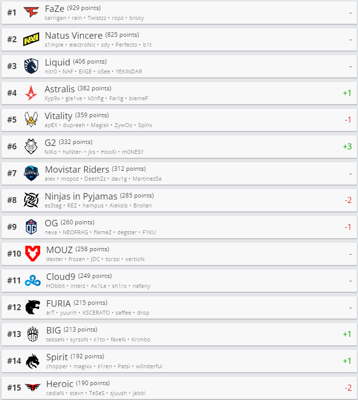 Традиционно в начале недели ресурс HLTV.org обновил рейтинг лучших команд мира по CS:GO. Среди топ-10 команд серьезный рывок сделала G2, поднявшись сразу на 3 позиции.