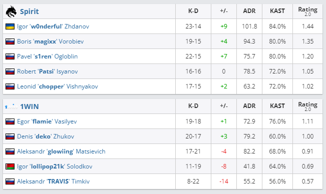 В первом раунде группового этапа Intel Extreme Masters Road to Rio 2022: European RMR A команда 1WIN с белорусом Игорем lollipop21k Солодковым со счетом 9:16 на карте Nuke уступила составу Team Spirit.