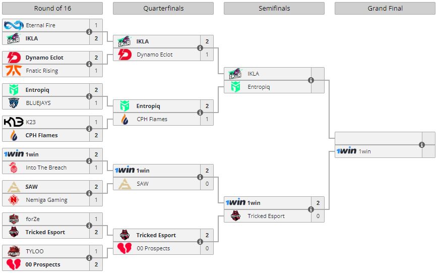 В гранд-финале турнира 1WIN сразится с победителем пары Entropiq — IKLA. Отметим, решающий матч турнира пройдет сегодня, 24 октября. Начало встречи — 17.30.