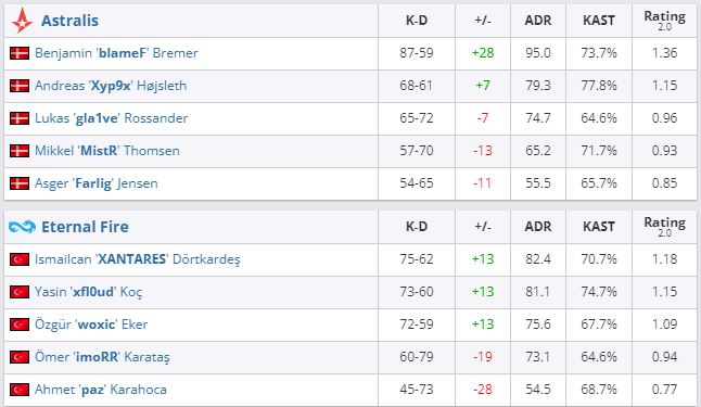 В следующем раунде Astralis сыграет с Vitality. Eternal Fire покинула турнир.