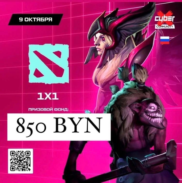 Минский компьютерный клуб CyberX (пр-т Победителей, 7а) 9 октября проведет турнир по Dota 2 в формате 1 на 1 без ограничений по героям с призовым фондом 850 белорусских рублей .