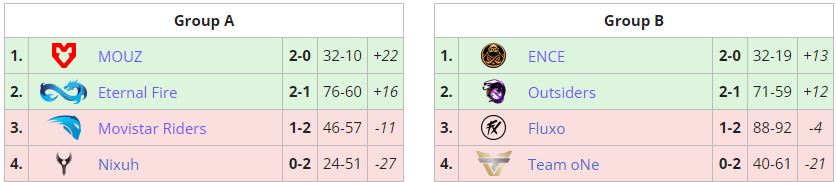 Outsiders и Eternal Fire сумели выйти в плей-офф ESL Challenger Rotterdam 2022. Коллектив из Восточной Европы сломил сопротивление Fluxo — 2:0 (Dust2 — 19:17, Inferno — 16:8). Eternal Fire “всухую” обыграла Movistar Riders (Vertigo — 16:10, Inferno — 16:12).