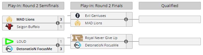 Saigon Buffalo и LOUD покинули 2022 World Championship по League of Legends на плей-ин стадии. Вьетнамский коллектив не справился с MAD Lions — 1:3. LOUD оказалась слабее DetonatioN FocusMe — 1:3.