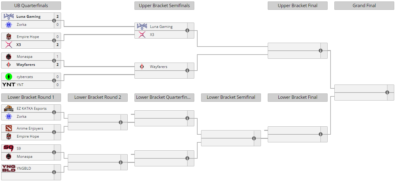 Следующим соперником для Wayfarers станет победитель пары cybercats — YNT 3-го октября в 21:00. MonaspA предстоит сразиться 2 октября в 18:00 с S9.