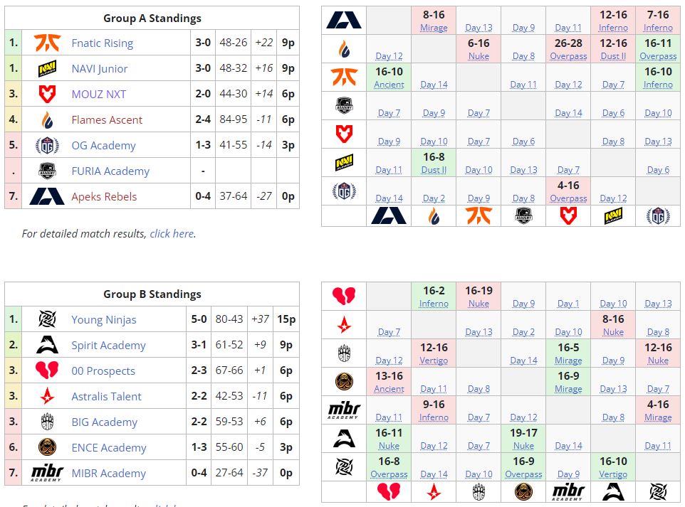 Завершился четвертый игровой день на WePlay Academy League Season 6 по CS:GO. По его итогам Fnatic Rising, NaVi Junior и MOUZ NXT лидирует в группе “A”. В “B” без поражений идут Young Ninjas, победив в пяти матчах.