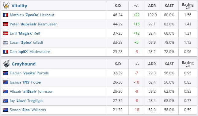 Grayhound покинула турнир на 20-22 месте, заработав $10 тыс. Vitality прошла в статистику 2-2, где сыграет 3 ноября на вылет с турнира / за выход в “легенды”.