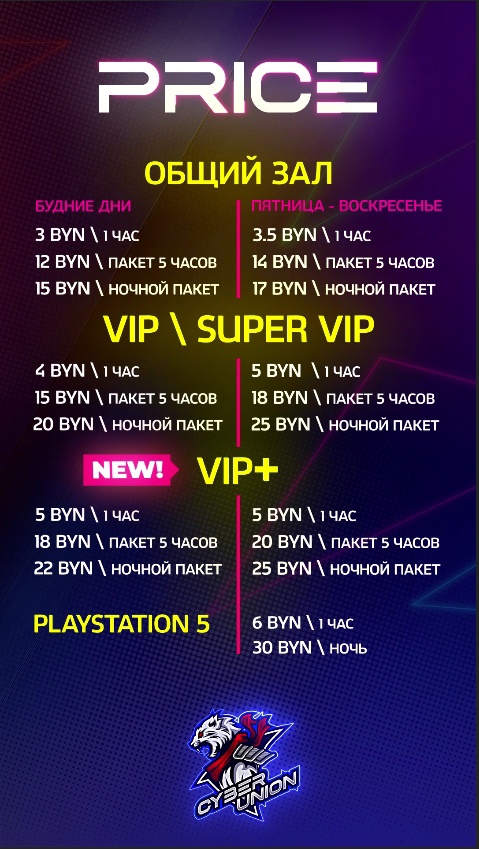 Новое заведение и новые подходы к ценам. Местные функционеры решили, что делить прайс имеет смысл не только по залам, но и по дням. Но при всем этом разница игры в конце недели или в ее будней части есть лишь для базового зала. Наверняка такой выбор обусловлен местным “пиковым временем”. Сам ценник довольно средний как для компов, так и для PlayStation 5, так что вы не разоритесь. Подкачало разве что отсутствие каких-то интересных пакетов — здесь создатели клуба решили не париться и добавить только “5 часов” и “ночной”. Учитывая опыт других обзоров, кажется, что этот аспект стоило бы доработать.