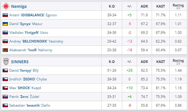 Nemiga не смогла пройти в плей-офф European Development Championship Season 6 с первой попытки. В матче за выход в следующую стадию белорусская организация уступила SINNERS — 0:2 (Inferno — 8:16, Nuke — 13:16).