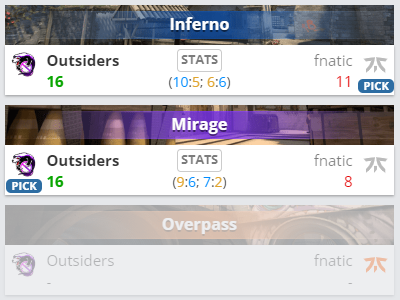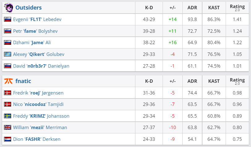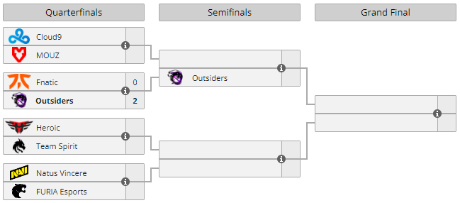 В четвертьфинале Intel Extreme Masters Rio Major 2022 российская команда Outsiders со счетом 2:0 обыграла состав Fnatic и вошла в топ-4 турнира, гарантировав себе минимум $80 000. Проигравшая команда покинула чемпионат, заработав $45 000.