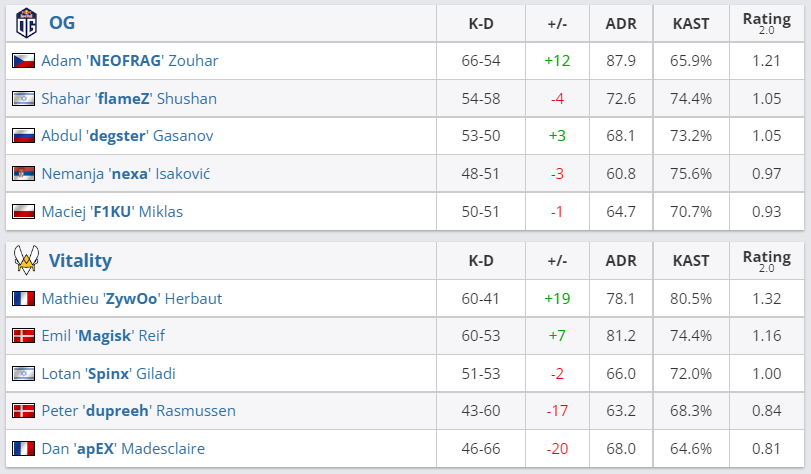 В пятом раунде Challengers Stage на IEM Rio Major 2022 состав Team Vitality со счетом 2:1 обыграл команду OG и прошел в Legends Stage. Проигравший коллектив покинул турнир, получив за 17-19 место $10 000 призовых.