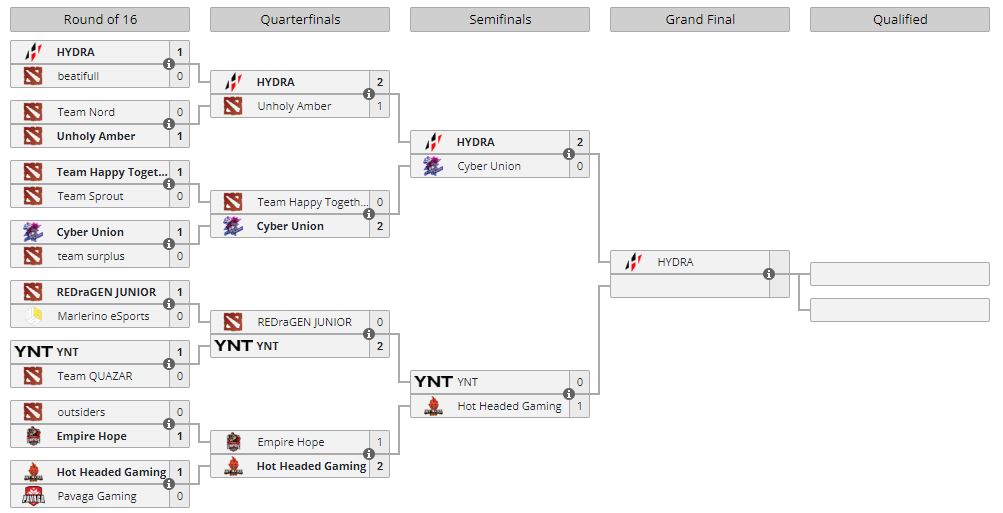 Cyber Union не сумела пройти в закрытую квалификацию к Dota Pro Circuit 2023 для Восточной Европы с первой попытки. В матче за слот белорусский состав уступил HYDRA — 0:2.