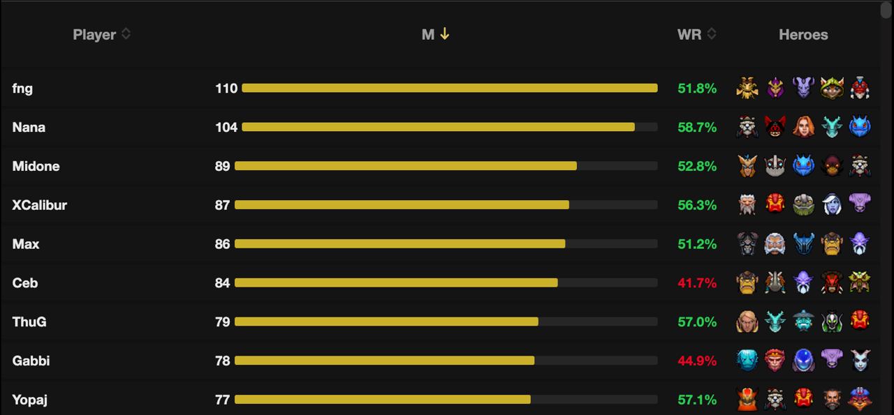 Профессиональный игрок в Dota 2 Артем Fng Баршак стал лидером по количеству сыгранных пабликов за последние 8 дней. Такую статистику предоставил портал DLTV. Белорус провел 110 рейтинговых матчей с винрейтом 51.8%.