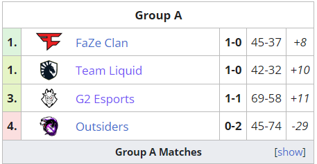 Outsiders покинули турнир на 7-8 месте, заработав $15 000. G2 прошла в четвертьфинал, где встретится с проигравшей пары Team Vitality — OG. Матч пройдет 16 декабря в 14:30.