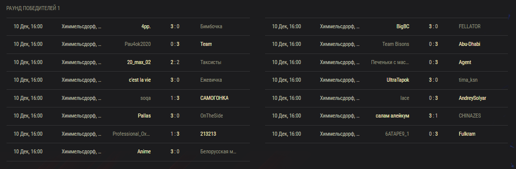 Лишь одна игра закончилась с близким счетом 3:2. Команда 20_max_02 в тяжелейшем матче смогла одолеть Таксистов.