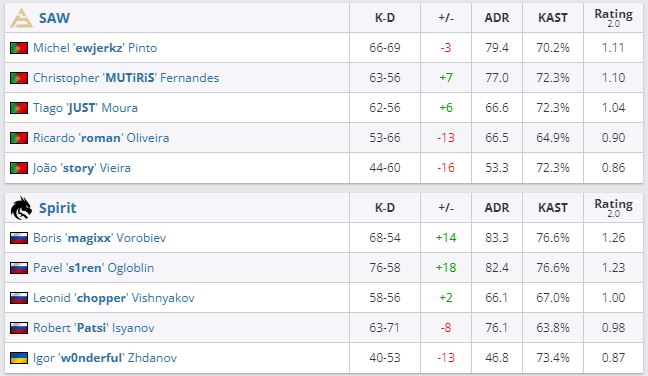 За победу в турнире SAW получила $20 тыс., а также слот на ESL Pro League Conference Season 17. Team Spirit заработала $12 500 и место на ESL Challenger League Season 44: Europe.