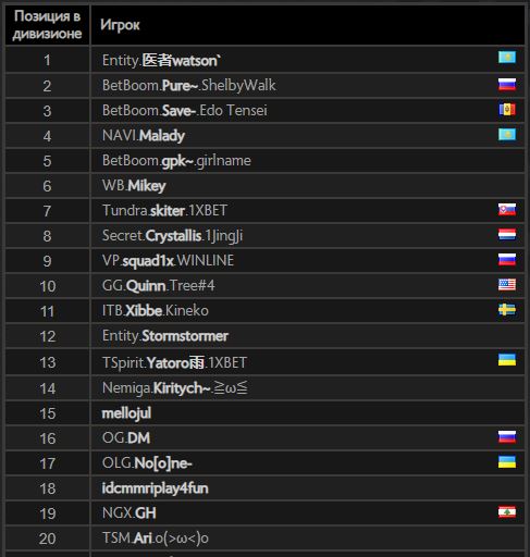 Лучший из белорусов — Кирилл Hellscream Лагутик: саппорт Nemiga занимает 34-ю строчку рейтинга. Отметим, Алексей Smiling Knight Свиридов, переехавший в Перу, занимает третье место южноамериканского ладдера.