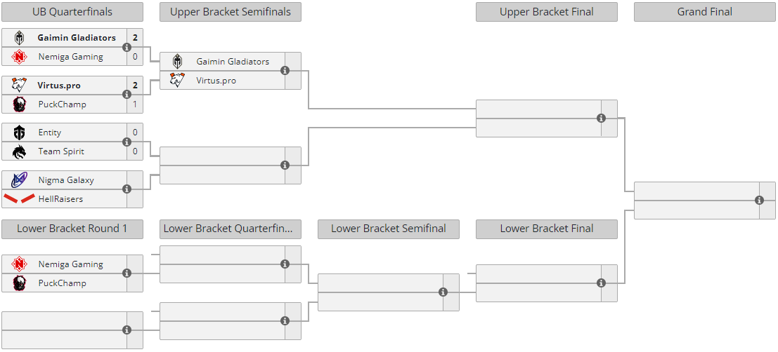 Следующим соперником для Virtus.Pro станет коллектив Gaimin Gladiators. Игра пройдет 24 декабря в 21:00. PuckChamp предстоит сразиться в матче на вылет с Nemiga Gaming в 18:00.